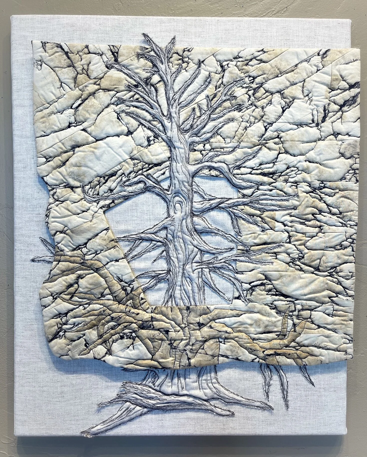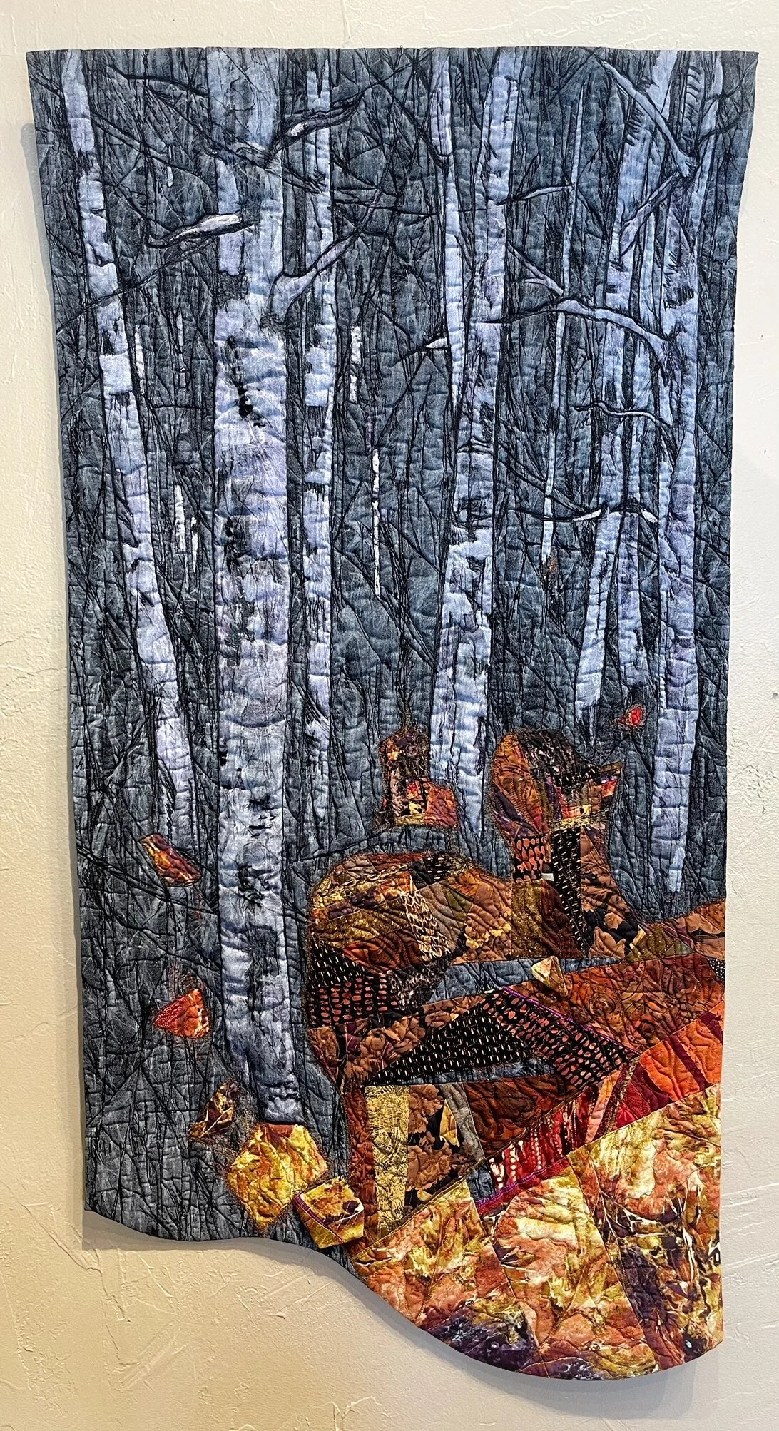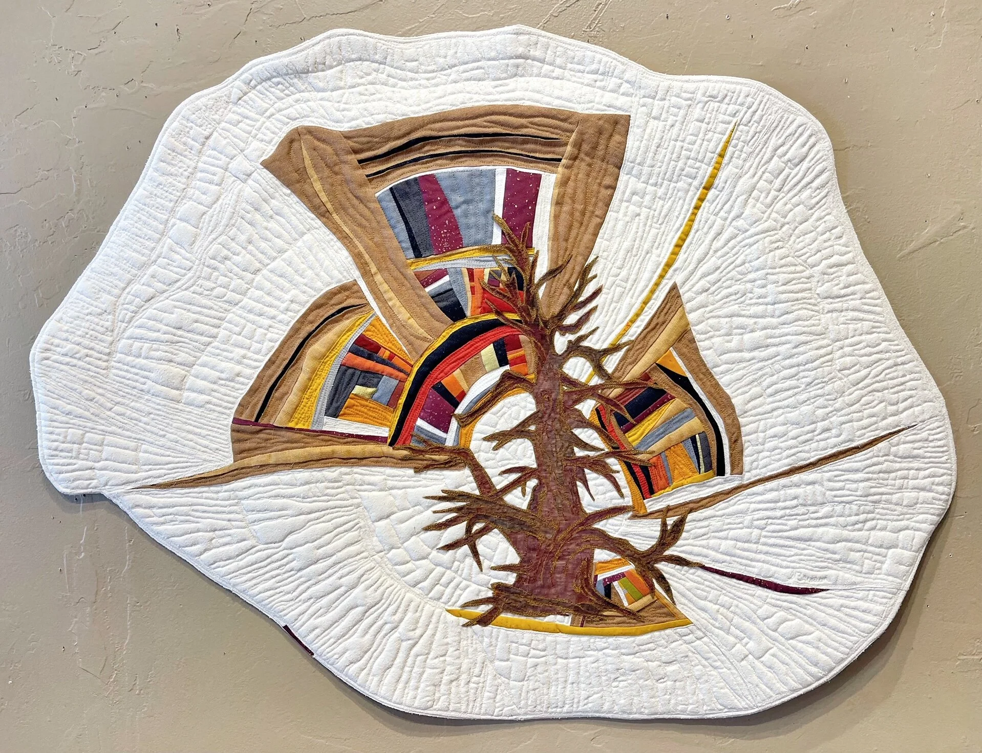 It's important to Helen that she shares her knowledge and passion for quilting, because learning different styles and techniques from other quilters is what it's all about. Her work includes imagery from liturgical items as well as imagery found from within nature. The show currently hanging at The Clearwater Gallery features artwork directly inspired from Central Oregon trees.