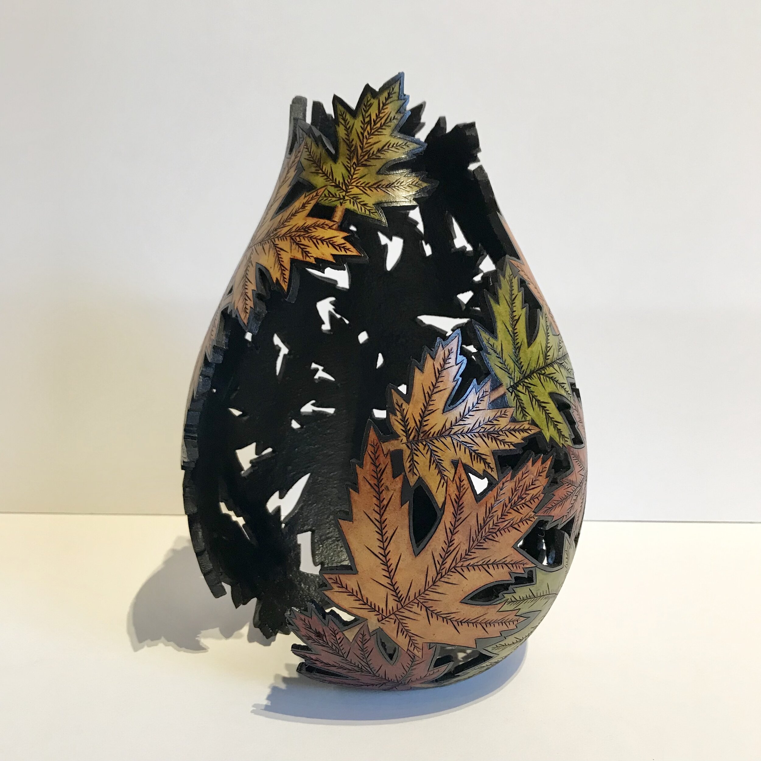 Terry Davis first discovered the gourds she uses in her artwork while on a road trip through Northern California. While she appreciated the unique beauty of these unadorned gourds, she eventually decided to use them as the canvas for the carving, burning, and staining that leads to her artistic creations. Terry is always learning new ways to use her gourds as her imagination finds expression in the many signature pieces that she creates each year.
