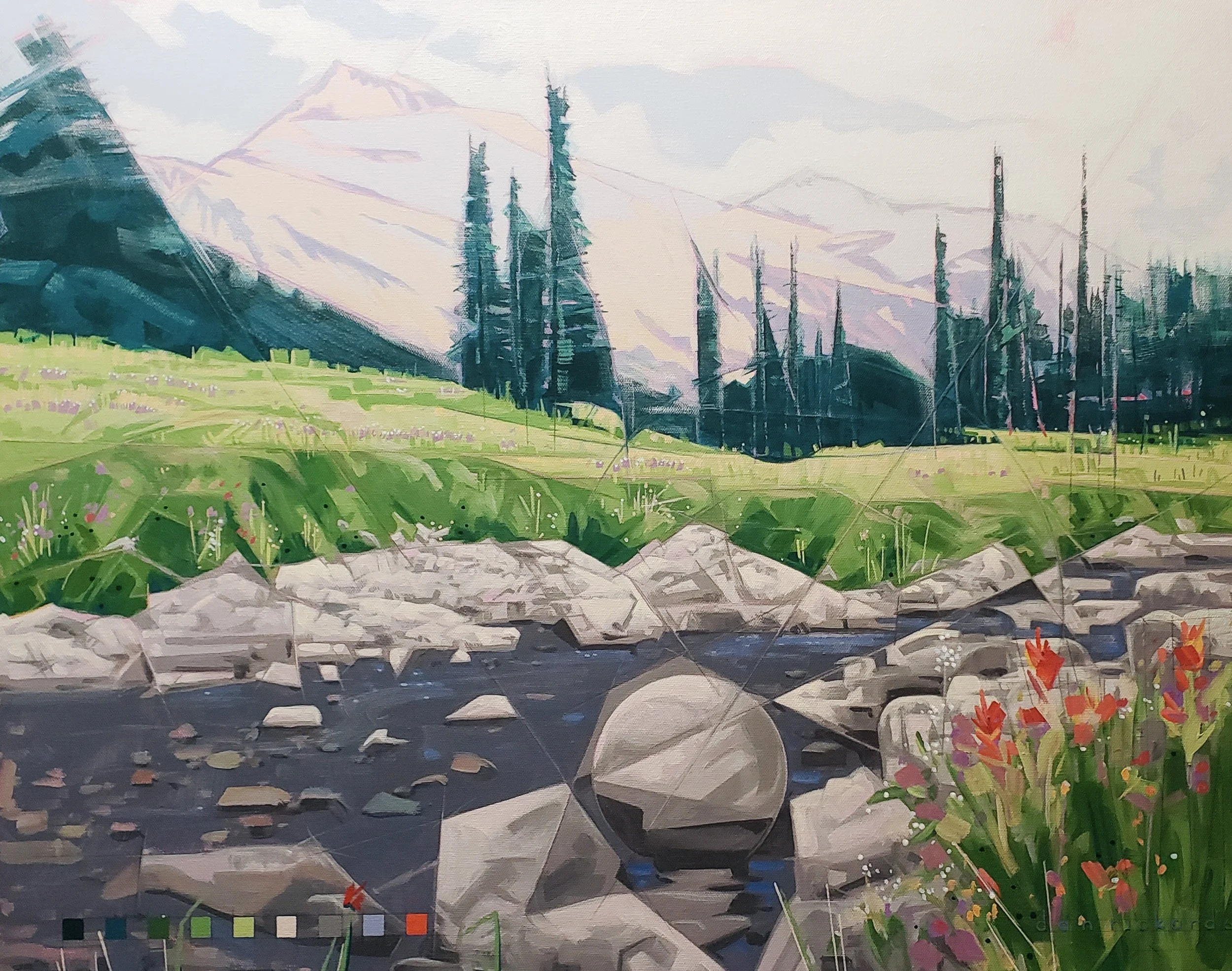 Lately, Dan has been imagining - if God, as an artist, was also a painter, what would His design process look like as He sat at His easel to create a landscape? What colors did He experiment with before choosing the ones He did? At what scale could the mountains have sat or the river run? How vast the horizon? How dense the tree line?