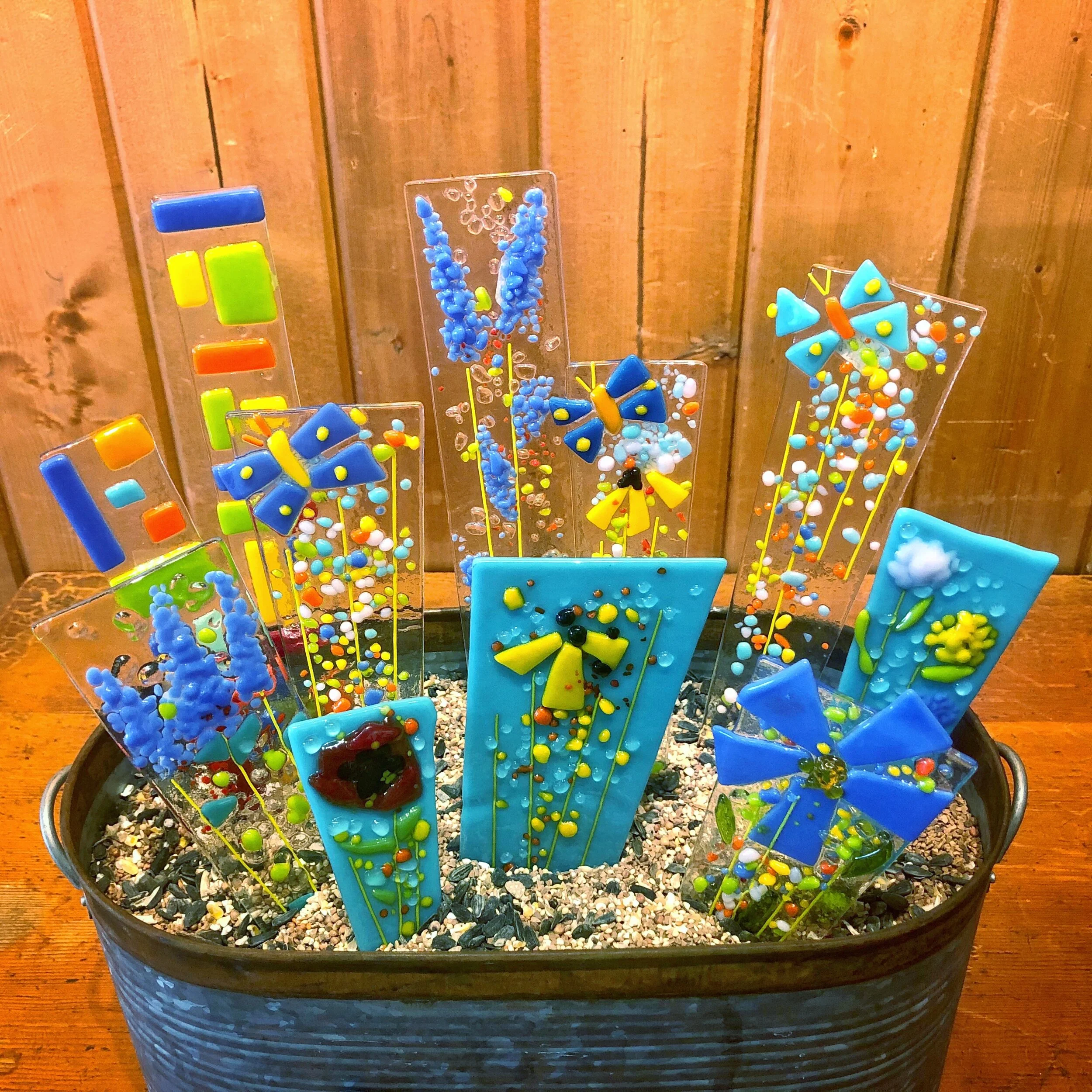 Featured this week is the beautiful work from local artist Edie Shelton. Edie's fused glass creations add fun and colorful accents to any space or room in your home, from kitchens to gardens. These pieces have so much character and can be mixed and matched to fit anyone's personality. A great gift just in time for Mother's Day!