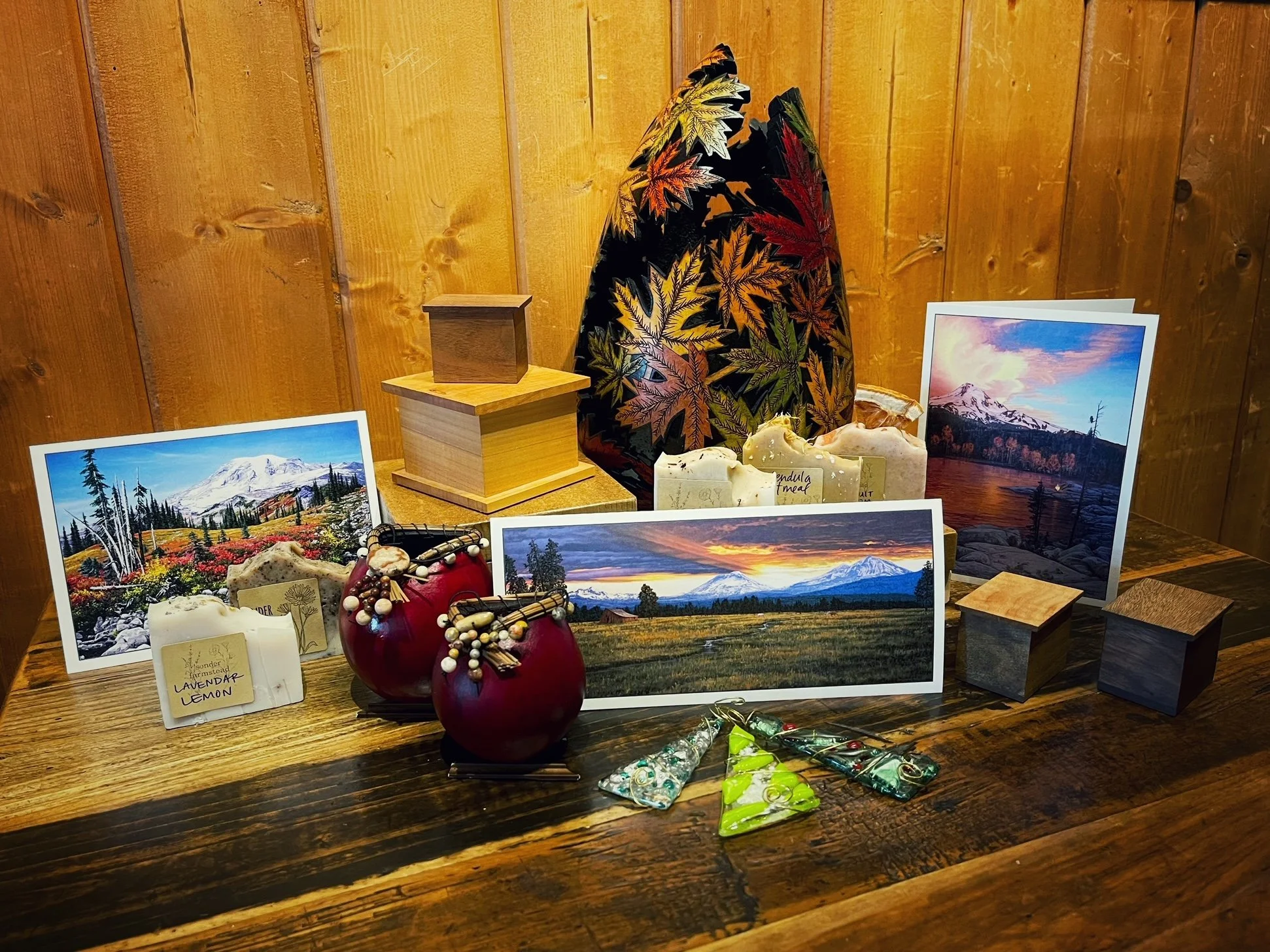 Soaps, Gourd Ornaments, Ring Boxes, Glass Ornaments, Dan Rickards Cards